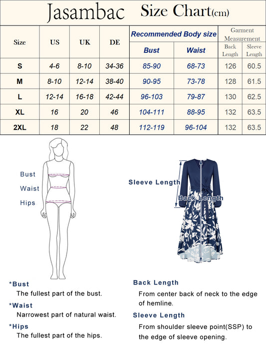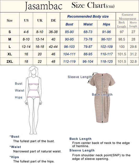 Jasambac Women Elastic Waist Mid-Calf Dress OL Short Sleeve V-Neck A-Line Dress