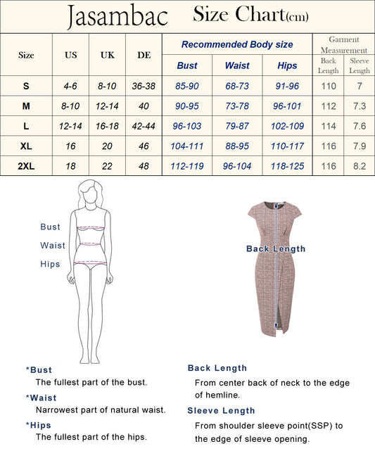 Jasambac Women Wrap Hem Tweed Dress OL Cap Sleeve Crew Neck Bodycon Dress