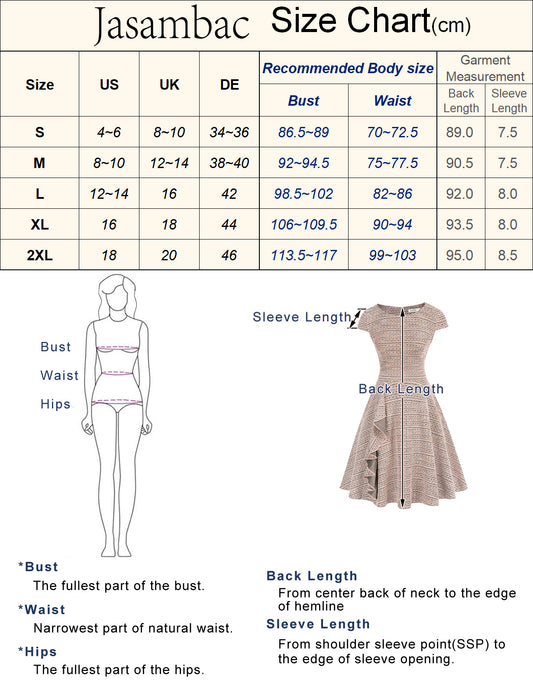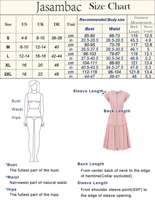 Jasambac Women Defined Waist Dress Cap Sleeve Scoop Neck Above Knee A-Line Dress