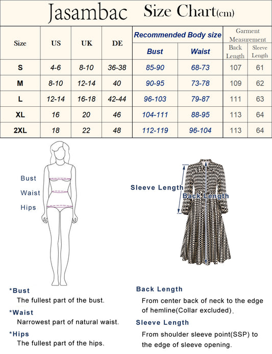 Jasambac Women Swiss Dots Mid-Calf Dress Notched Neck Elastic Waist A-Line Dress