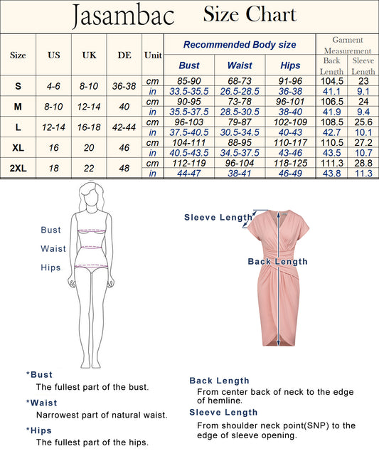 Jasambac Women Wrap Hem Ruched Dress OL Short Sleeve V-Neck Bodycon Dress