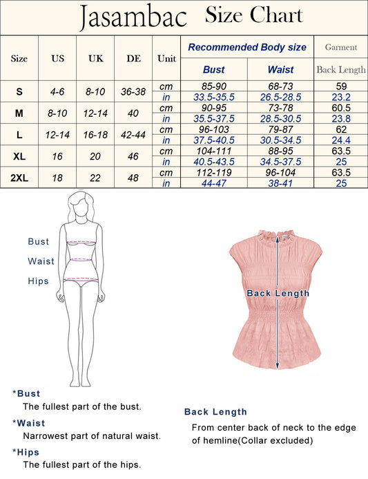 Jasambac Women Smocked Tops OL Cap Sleeve Crew Neck Keyhole Back Tops