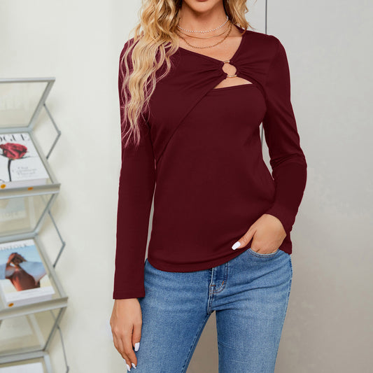 Jasambac Women Hollowed-Out T-Shirt OL Long Sleeve Pullover Tops