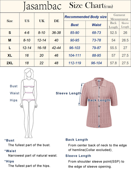 Jasambac Women Hollowed-out Cardigan 1/2 Sleeve Lapel Collar Button-up Sweater