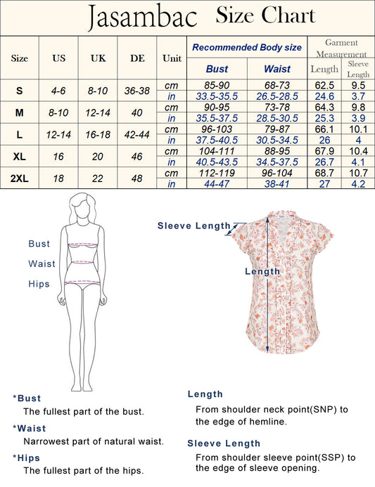Jasambac Women Chiffon Shirt Casual Flutter Sleeve V-Neck Button-up Tops