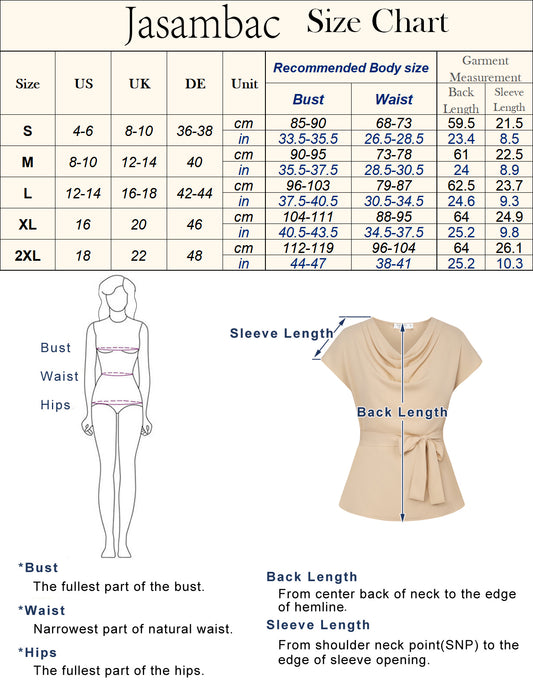 Jasambac Women Cowl Neck Tops OL Short Sleeve Straight Pullover Tops