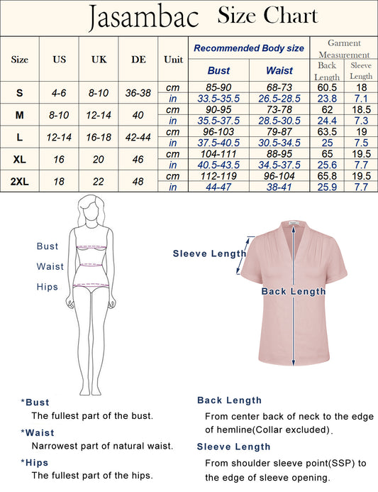Jasambac Women V-Neck Blouse OL Comfy Short Sleeve Pullover Tops