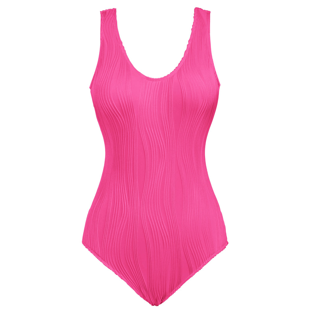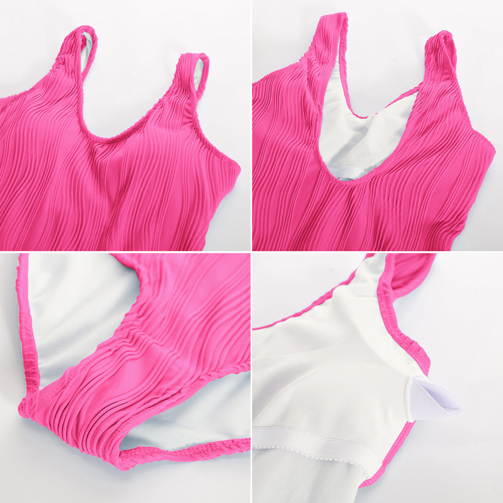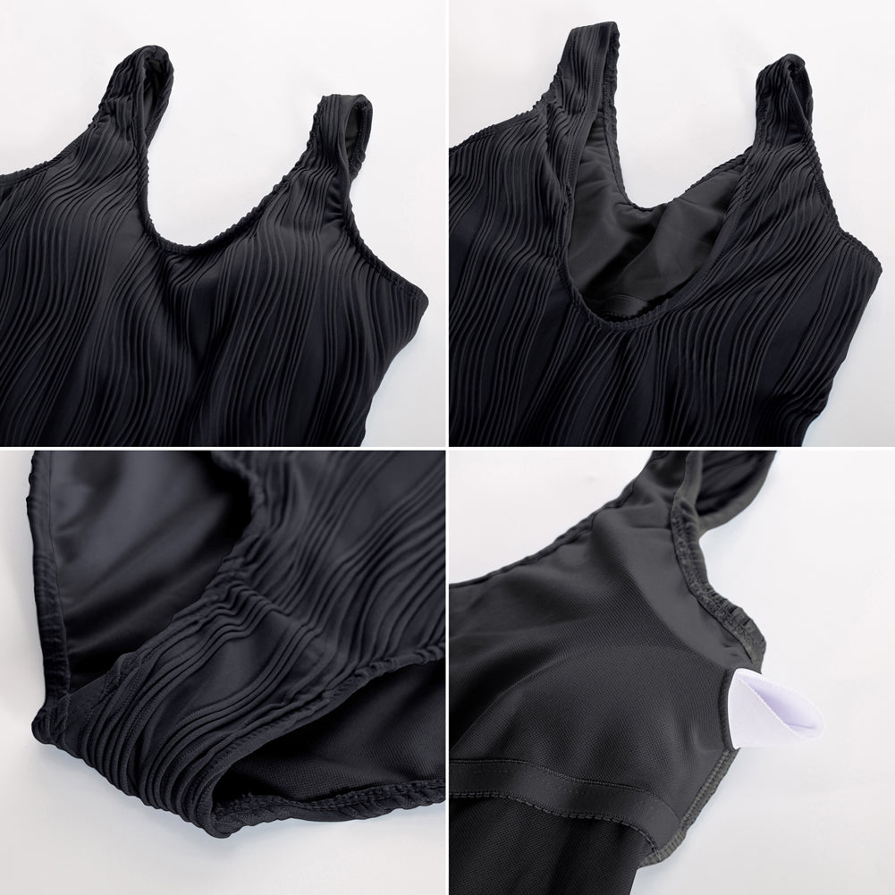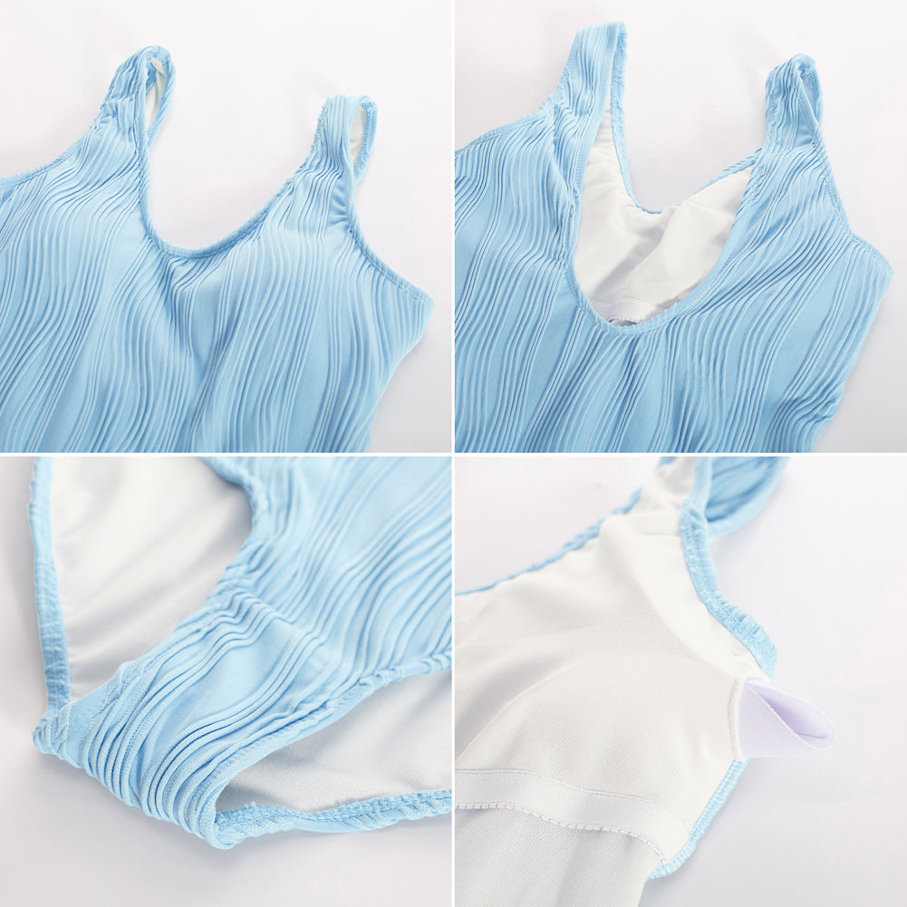 Jasambac Women Textured Teddy Swimwear Sleeveless V-Neck U-Back Bathing Suit